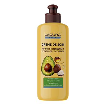 Offrez à vos cheveux une hydratation intense avec la crème soin Nutri-Protection LACURA HAIR. Sa formule nourrit en profondeur, renforce la fibre capillaire et dompte les frisottis, laissant vos cheveux doux, brillants et faciles à coiffer. Idéale pour les cheveux secs ou abîmés, pour une douceur durable au quotidien.