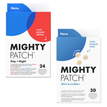 Un bouton ? Hero à la rescousse ! Hero Mighty Patch Day + Night est le combo parfait pour traiter les boutons d’acné de jour comme de nuit. Grâce à sa technologie hydrocolloïde, les patchs absorbent les impuretés et favorise la guérison en toute discrétion dès 6 heures (et en plus, ils vous empêcheront de céder à la tentation de tripoter votre bouton).