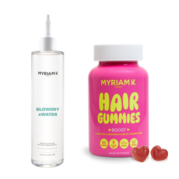 Les Love Gummies Hair Vitamines de Myriam K sont des compléments alimentaires vegan, formulés avec de la biotine et des vitamines du groupe B pour accompagner la vitalité des cheveux. L’eau lamellaire Blowdry x Water est un soin sans sulfate ni silicone qui hydrate, lisse et apporte douceur et brillance aux longueurs.